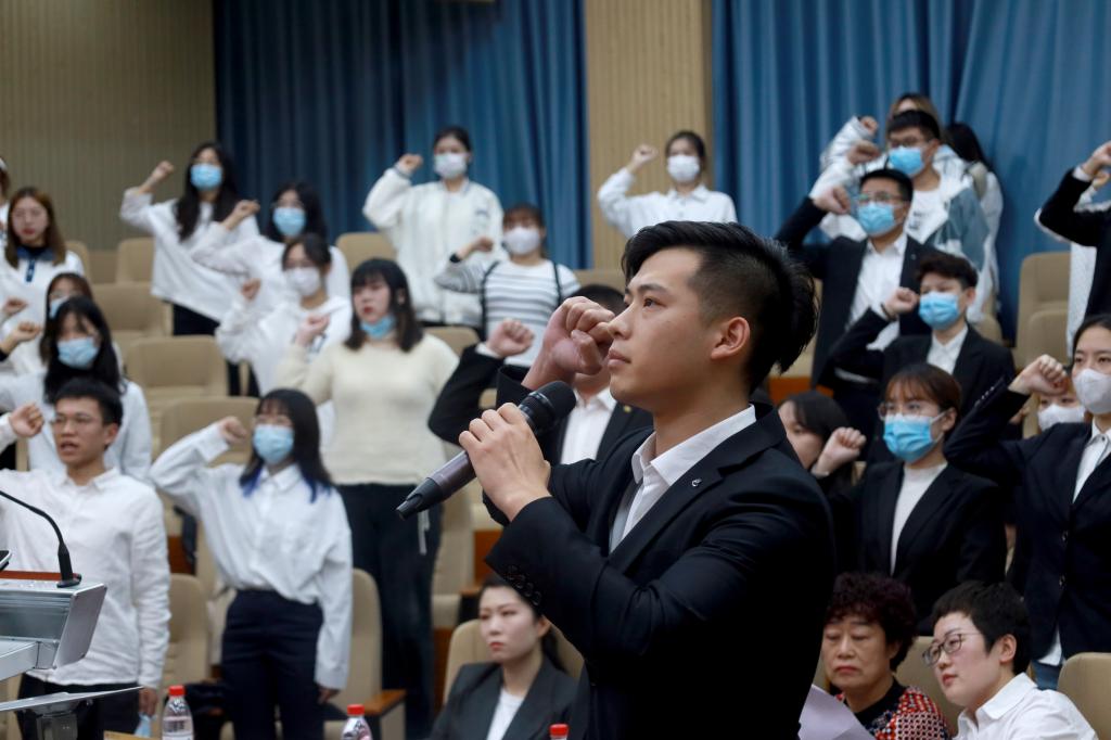 会议伊始,团委书记史萌宣读第九届学生会成员名单。随后,第八届学生会主席刘永昌发言,对上一届学生会工作进行汇报,向第九届学生会提出了工作建议,并表达祝愿;第九届学生会主席杨朝政发言,做出了对于未来学生会的工作设想。紧接着,与会同学以积极的精神面貌与热情完成了学生会成员集体宣誓。