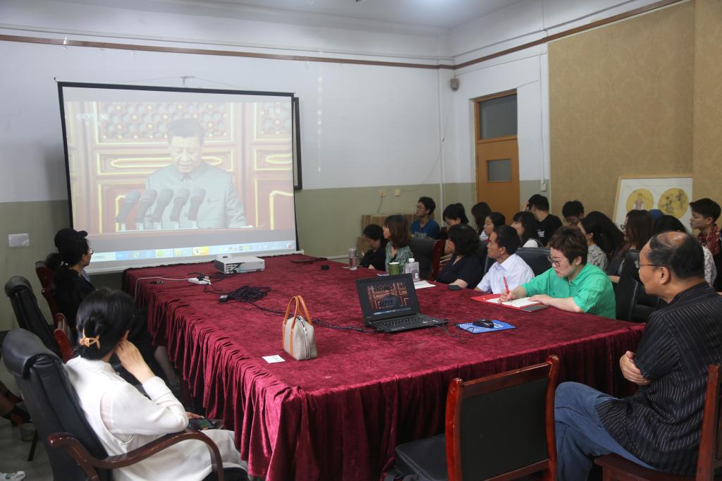 观看现场直播后,艺术学院院长范正红发表重要感言:“中国共产党拥有辉煌的历史,习总书记提到伟大的中国共产党带领中国人民推倒了‘三座大山’建立了新中国,在社会主义建设上走向伟大复兴的时刻,在这个重要的节点上,我们作为一个党员,恰逢这样伟大的时刻,在日常生活中更应该做好本职工作,为民族复兴事业贡献自己的一份力。”