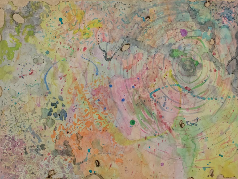 While using watercolor I will listen to music and paint whatever the music makes me feel . This piece isa painting to the song " Stil Crazy after all These Years by Paul Simon Reminiscing about all of theheartache that has struck my life , I am simultaneously reminded of the immense love that is alsopresent . The grief and sorrow in combination with joy and play is exactly what this piece represents for me .