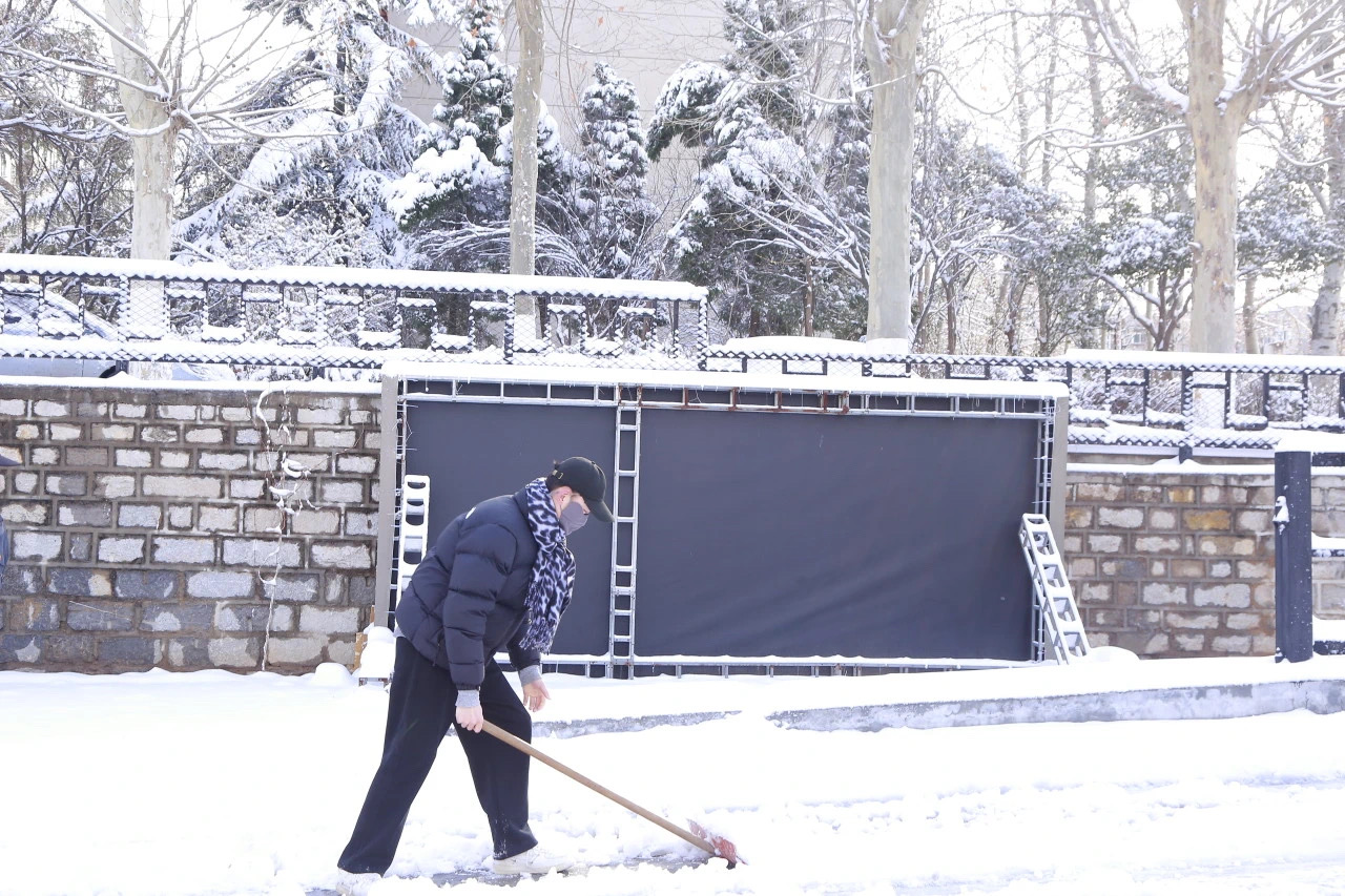 在清扫积雪的基础上,同学们还充分发挥了艺术学院的专业特色和创意灵感。他们利用清扫出的积雪,堆出了栩栩如生、憨态可掬的雪人,为银装素裹的校园增添了一抹别样的生机与活力。