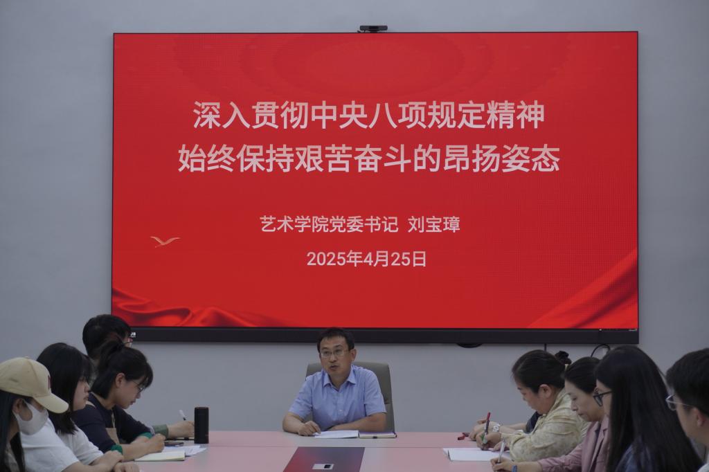 4月25日下午,艺术学院党委书记刘宝璋以“深入贯彻中央八项规定精神 始终保持艰苦奋斗的昂扬姿态”为题,给学生党员和部分教师党员讲授专题党课。