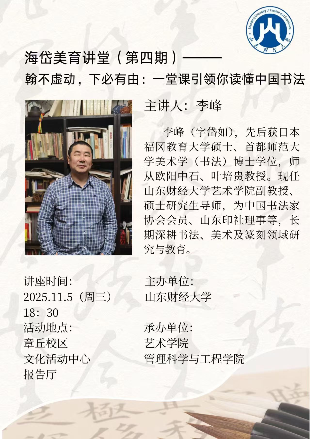 上一条:教师定制培训:碑帖的鉴定与修复专题讲座 下一条:海岱美育讲堂(第三期):美商与财商:解锁艺术金融世界的密码