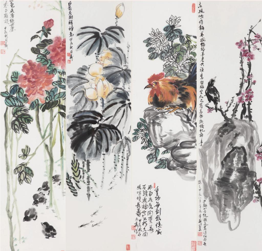 花鸟四屏歌盛世